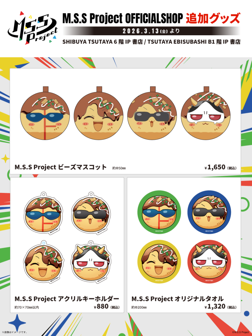 2026年3月13日(金)より、IP書店、大阪IP書店内「M.S.S Project OFFICIALSHOP」にて、たこ焼きイラストグッズの発売が決定しました。