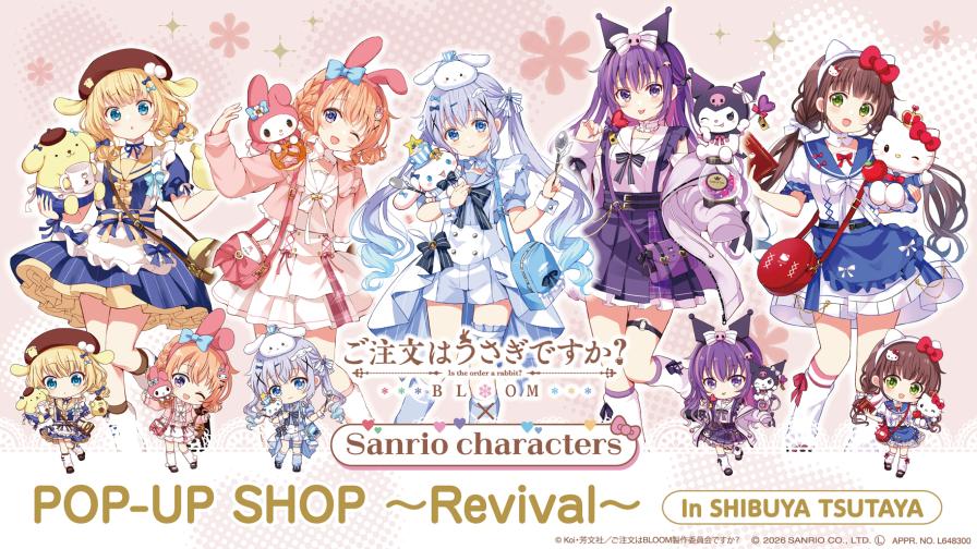 2026年4月25日(土)よりSHIBUYA TSUTAYAの6階 IP書店にて『ご注文はうさぎですか?BLOOM×サンリオキャラクターズ』POP-UP SHOP ~Revival~ の開催が決定いたしました。