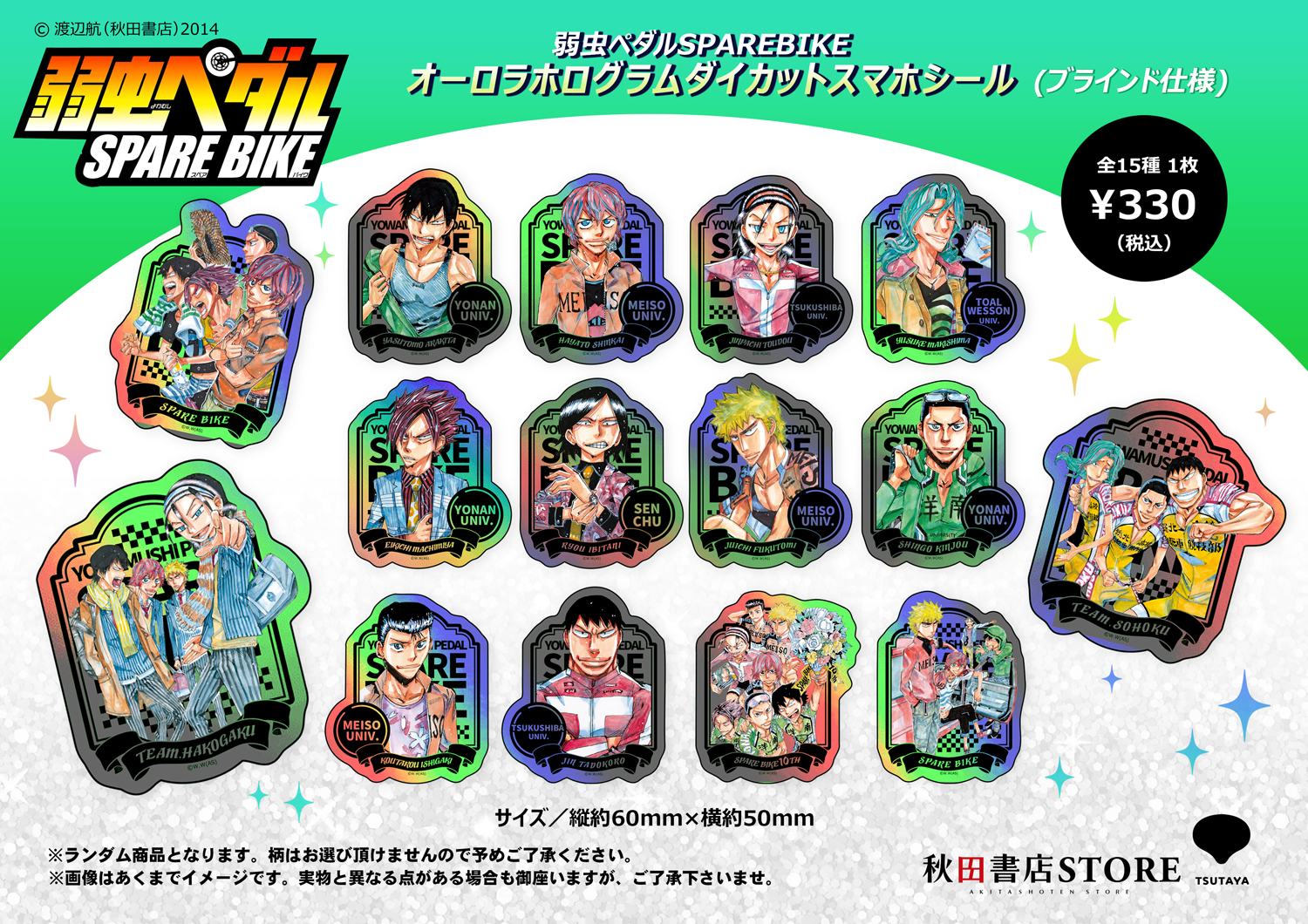 ■弱虫ペダルSPARE BIKE オーロラホログラムダイカットスマホシール【ブラインド仕様】 全15種