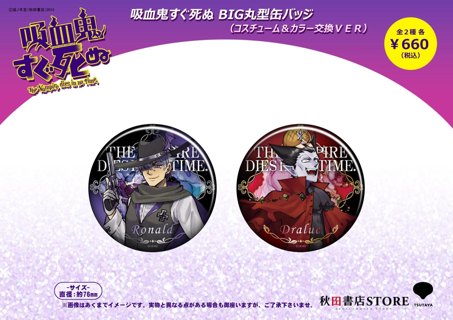 ■吸血鬼すぐ死ぬ BIG丸型缶バッジ(コスチューム&カラー交換VER) 全2種