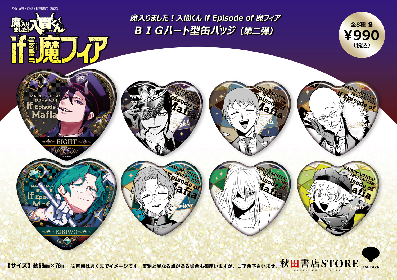 ■魔入りました!入間くん if Episode of 魔フィア BIGハート型缶バッジ(第二弾) 全8種